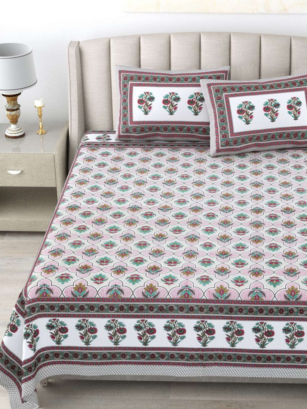 100% Pure Cotton Traditional Printed Bedsheet for Double Bed King Size Bedsheet with 2 Pillow Covers